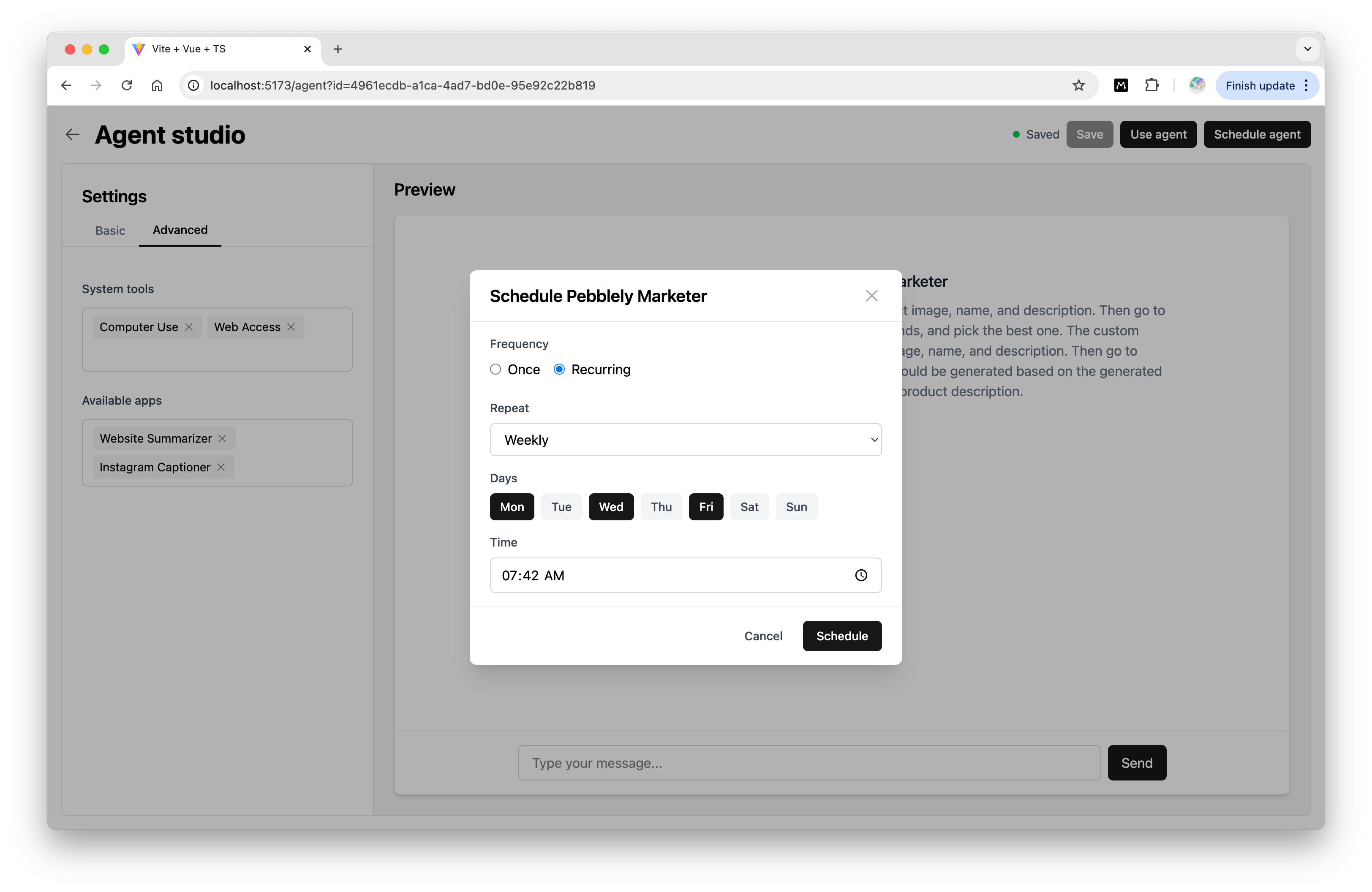First, describe what you want the agent to do and connect your accounts that the agent will need access to. Using a powerful reasoning model, this agent will create a plan to complete the task and figure out workarounds when certain steps fail.